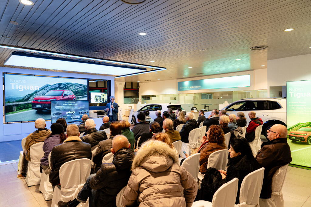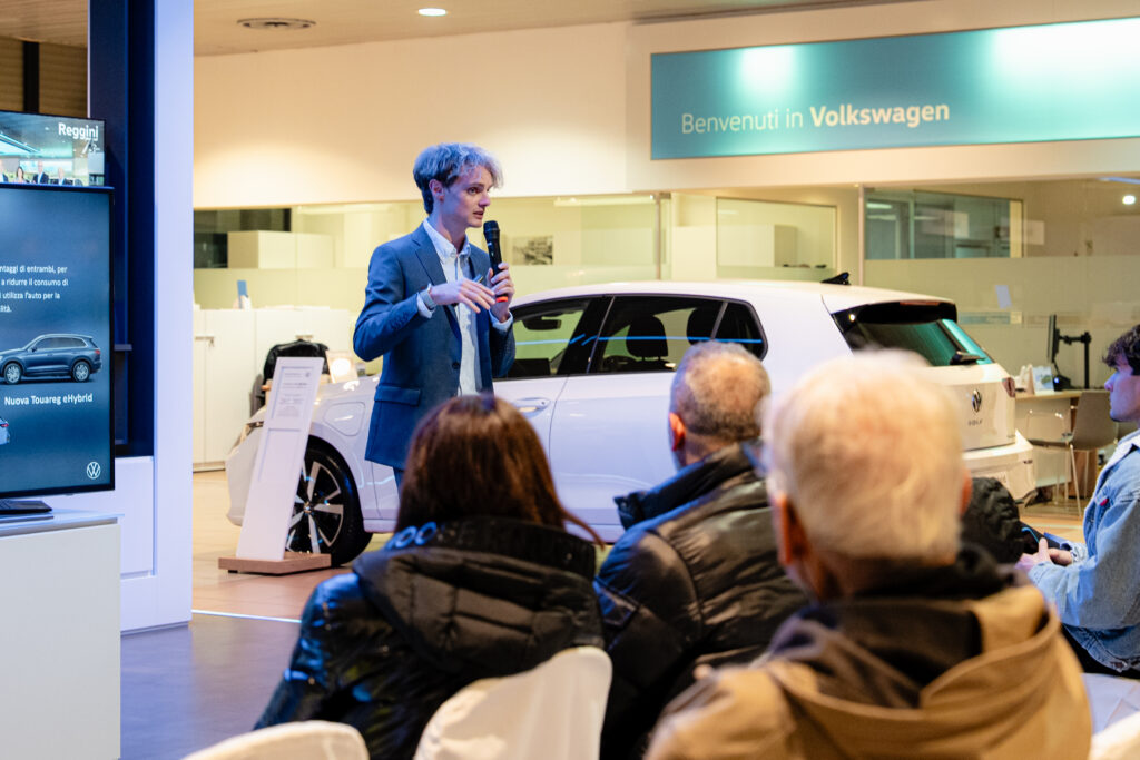 La parte tecnica è stata affidata al Trainer Matteo, che ha raccontato e mostrato nel dettaglio le caratteristiche delle vetture eHybrid ed elettriche della gamma Volkswagen, illustrate come soluzioni ideali per un territorio come quello sammarinese, grazie alla loro versatilità, sostenibilità e alla possibilità di sfruttare diversi incentivi.