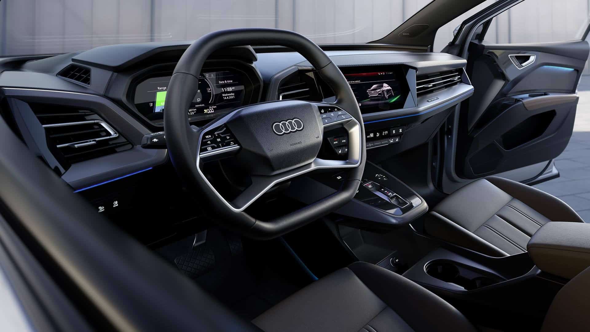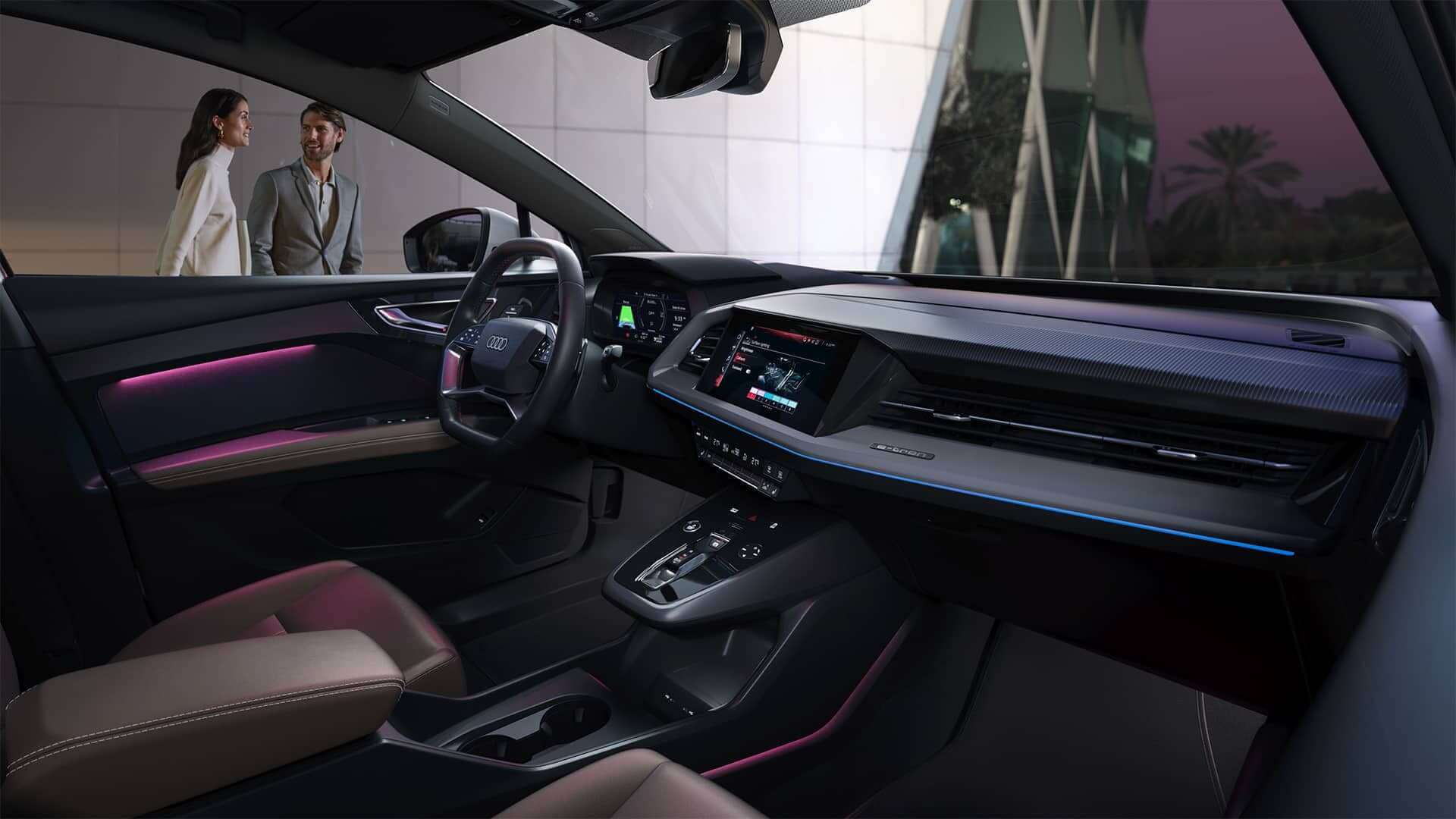 Gli interni progressivi dell’Audi Q4 Sportback e-tron sono la perfetta fusione di tecnologia, sportività e funzionalità, creando un ambiente moderno e accogliente.