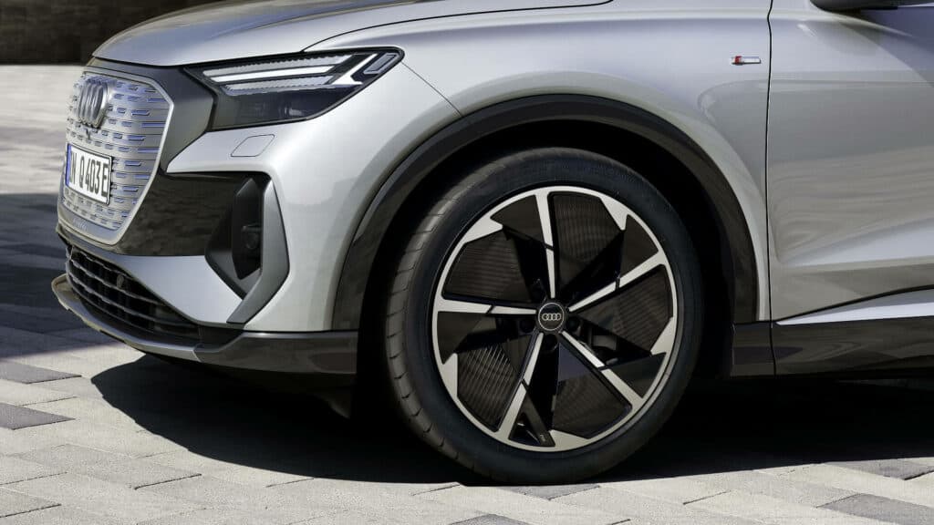 Guida sportiva su strada. L’identità sportiva dell’Audi Q4 Sportback e-tron traspare da ogni dettaglio, grazie ai cerchi in lega Audi Sport da 21″ a 5 razze, con design aerodinamico a rotore neri, torniti a specchio, disponibili su richiesta. Sono inoltre disponibili ulteriori cerchi dalle caratteristiche estremamente accattivanti, specificatamente per questo modello.